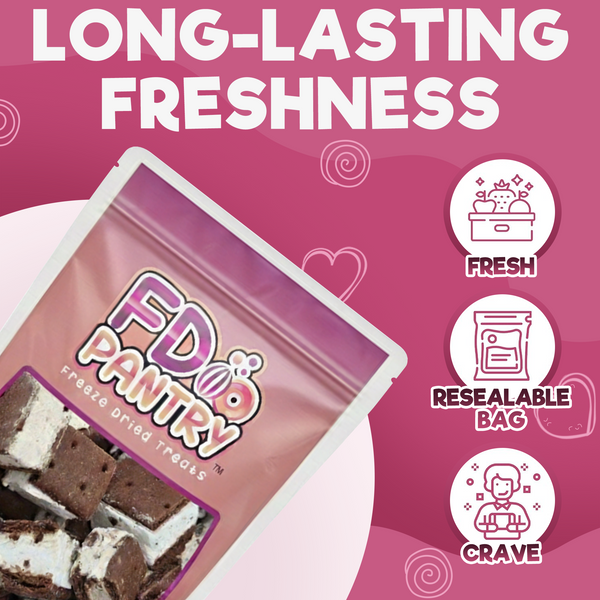 Crispy by Design: Freeze-drying creates a firm, crunchy texture that’s different from traditional ice cream sandwiches. Let it sit in your mouth for a moment to soften, or enjoy the satisfying crunch straight from the bag.