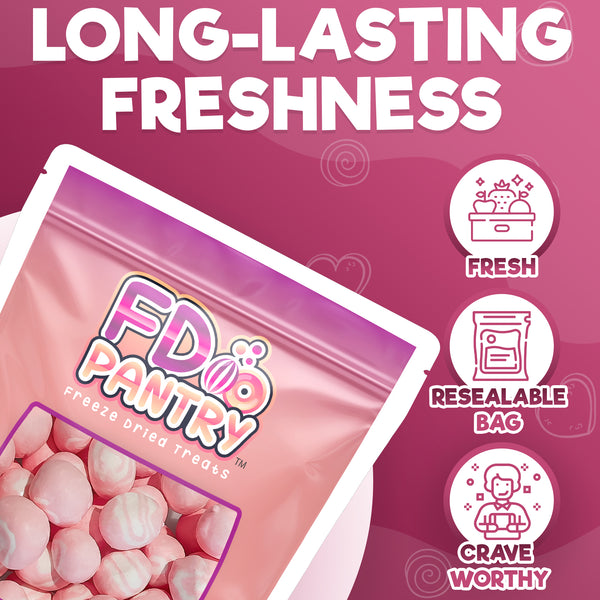 Discover a new way to savor your favorite sweets with FD Pantry's Freeze-Dried Candy Collection! Our unique freeze-drying process removes the moisture from the candies, intensifying their natural sweetness and enhancing the flavors. This transformation results in each piece becoming a light, crunchy delight that won’t stick to your teeth.